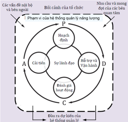- Hành động: thực hiện các hành động để giải quyết sự không phù hợp và cải tiến liên tục kết quả thực hiện năng lượng và hệ thống QLNL