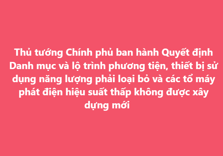 Ban hành Danh mục và lộ trình phương tiện, thiết bị sử dụng năng lượng phải loại bỏ và các tổ máy phát điện hiệu suất thấp không được xây dựng mới