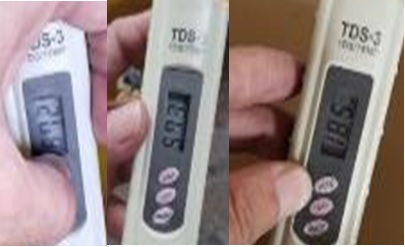 Hiện trạng trước khi thực hiện Kiểm tra TDS (tổng chất rắn hòa tan) nước lò hơi, kết quả như sau: - Khu vực A1: TDS Ià 573ppm và 671ppm. - Khu vực A2: TDS Ià 2680ppm và 1850ppm.