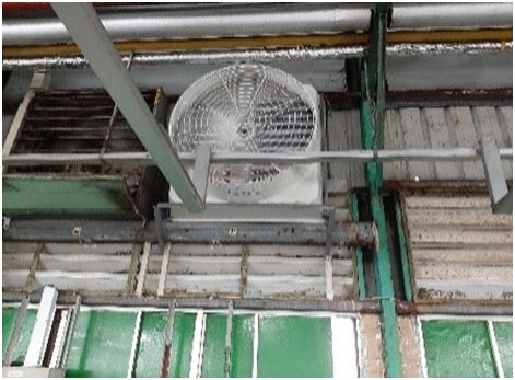 Hệ thống quạt hút thông gió hiện đang sử dụng các quạt thông gió truyền động bằng dây cuaroa (công suất 1,5 Hp, lưu lượng gió 33.000 m3/h).